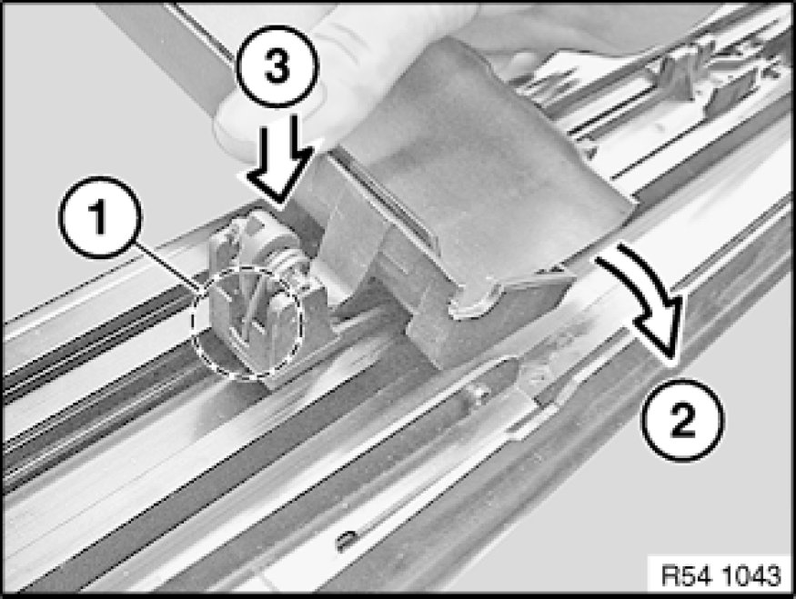 2. - Press drip moulding onto glass slide/tilt sunroof