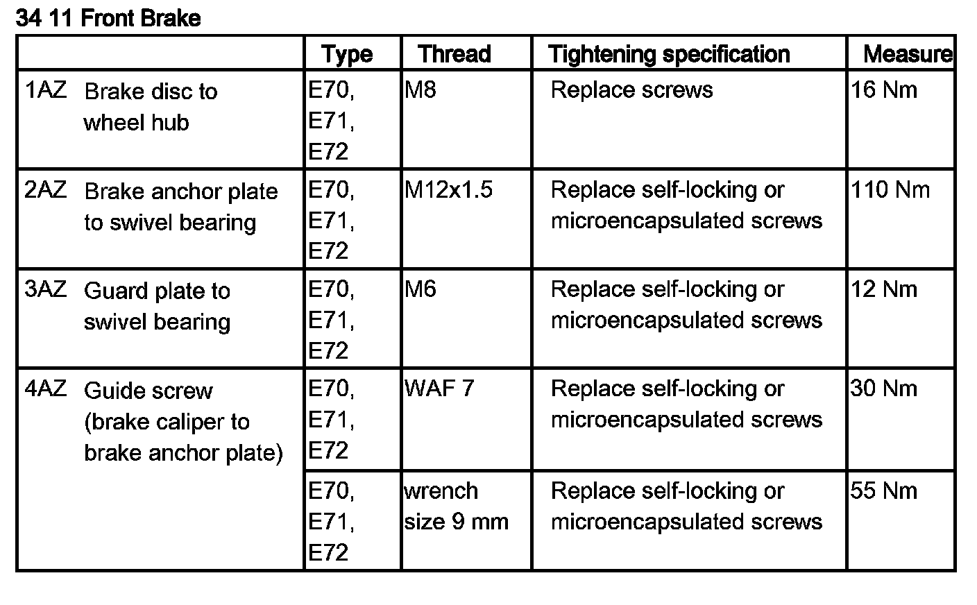 - Read and comply with notes on braking in new brake discs / brake pads.