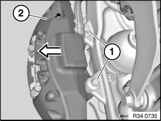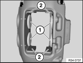 So as not to damage the surface coating, if possible do not mechanically clean the guide surfaces for the brake pads on the brake caliper mounting bracket. Instead, clean with brake cleaner BMW part no. 83 19 2 154 780.