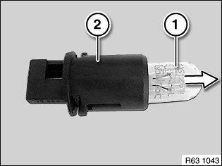 Remove bulb (1) from bulb holder (2) in direction of arrow.