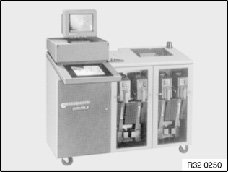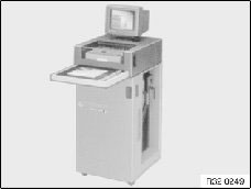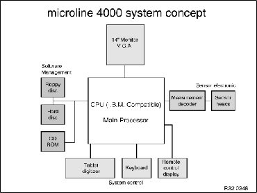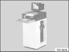 - The PC with graphics monitor and pull-out operating pad, mountings for the pickups, the remote control and the DIN-A4 printer are integrated on the workstation. The charging station is located in the cabinet and can also be connected to the pickups and remote control unit by plug-in cables (operation with simultaneous charging of the accumulators / rechargeable batteries).