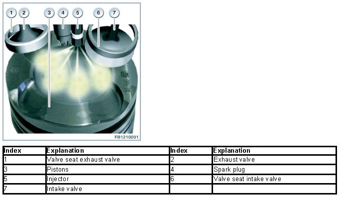 The engine features a Bosch spark plug. The spark plug performs the task of introducing the ignition energy into the combustion chamber. Electrical sparking between the electrodes initiates combustion of the fuel-air mixture. Spark plugs in jet-guided direct injection diesel engines are subject to specific requirements. A distinctive charge movement occurs in jet-guided direct injection diesel engines when compared to engines with intake pipe fuel injection. Geometrically, the spark plug must lie directly in the fuel injection trajectory. To do this, a precise torque of 23 Nm (+/- 3 Nm) must be observed during installation.