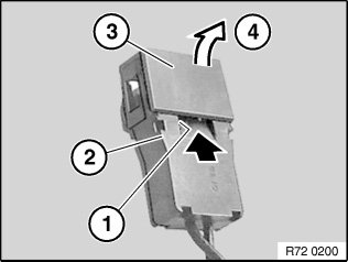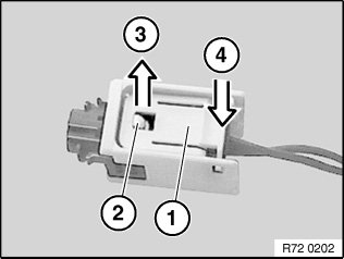 Press locking/unlocking plate (1) on edge (3) and pull plug (2) out of plug housing (4).