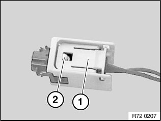 Only if the detent lug (2) is visible will the airbag plug connection gas generator/airbag module be correctly engaged.