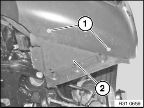 Unscrew nut (1) and remove tension strut (2) from swivel bearing.