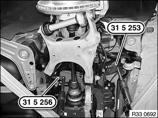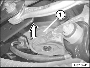 Remove front and rear compression struts and carefully lower rear axle carrier approx. 50 mm.