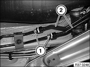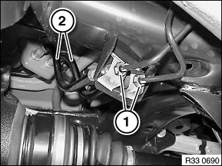 ^ Unclip lines for pulse generator, brake pad wear sensor or shock absorber from holders above rear axle carrier