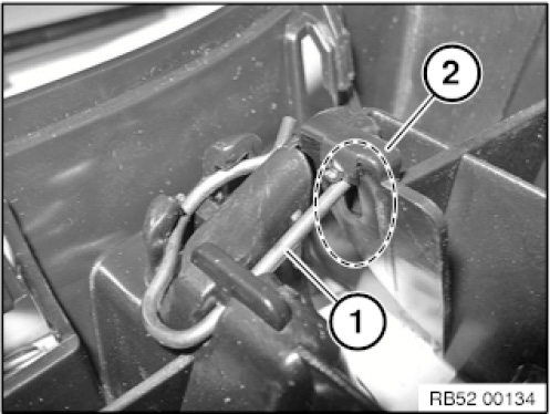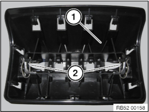 Head restraint inlay (1) and clamps (2) must be replaced.
