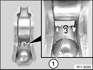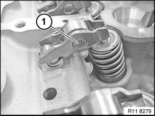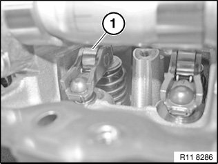 Detach roller cam followers (1) from hydraulic valve clearance compensating element and remove.