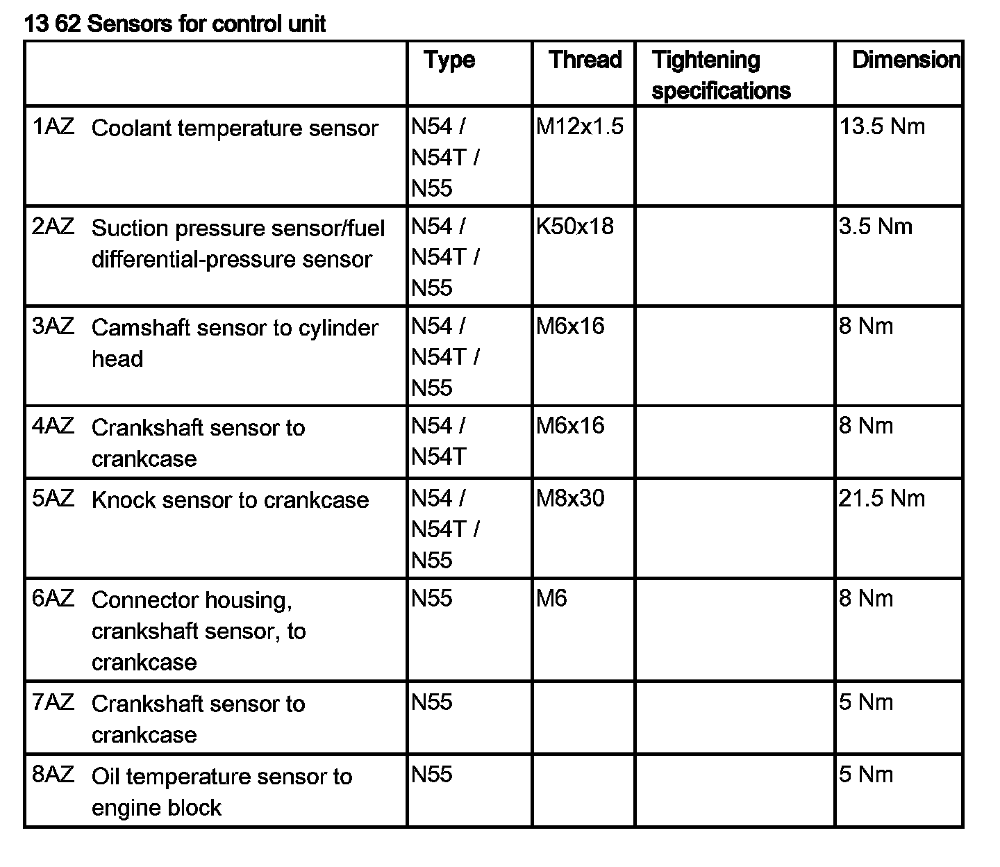 13 62 Senders for Control Unit