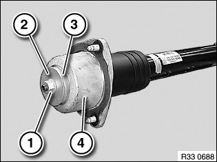 Remove joint disc (2), support bearing upper section (3) and support bearing flange (4).