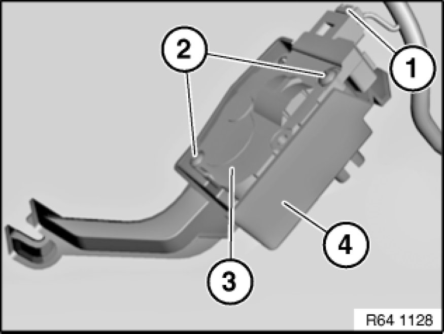 Remove bracket (3) with servodrive for footwell flap from heater/air conditioner (4).
