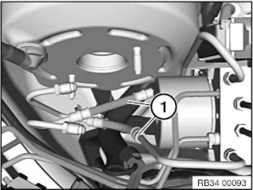 After the master cylinder and hydro aggregate have been removed, the two brake lines (1) will be exposed.