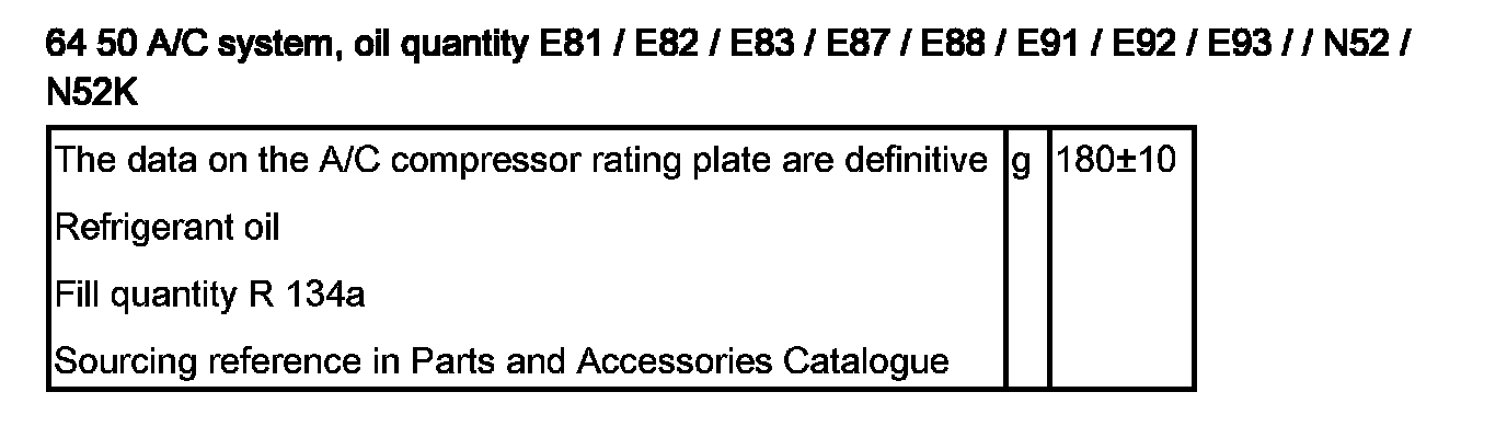 64 50 A/C System, Oil Quantity