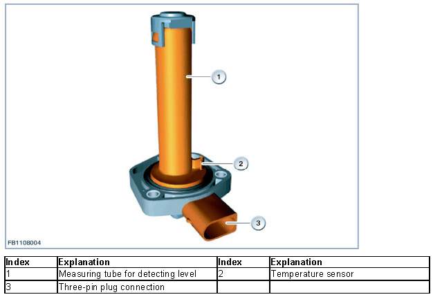 The oil condition sensor is attached to the oil sump and is accessible from below. The oil dipstick has been deleted from all of the new engine series (except diesel engines). Electronic oil-level monitoring is now a feature of all engines.