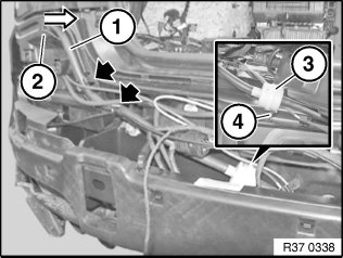 Pull ventilation line (1) in direction of arrow out of bumper trim (2).