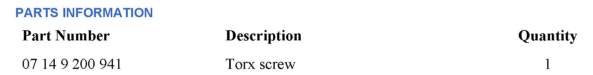 PARTS INFORMATION