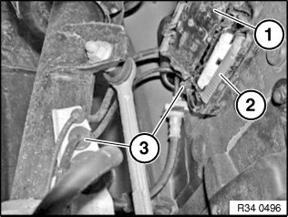 Open plug housing (1), pull plug connection (2) out of bracket and disconnect.