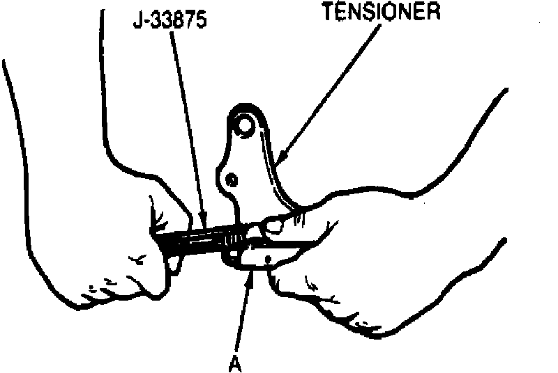 1. Compress tensioner spring using J-33875 (figure 14).