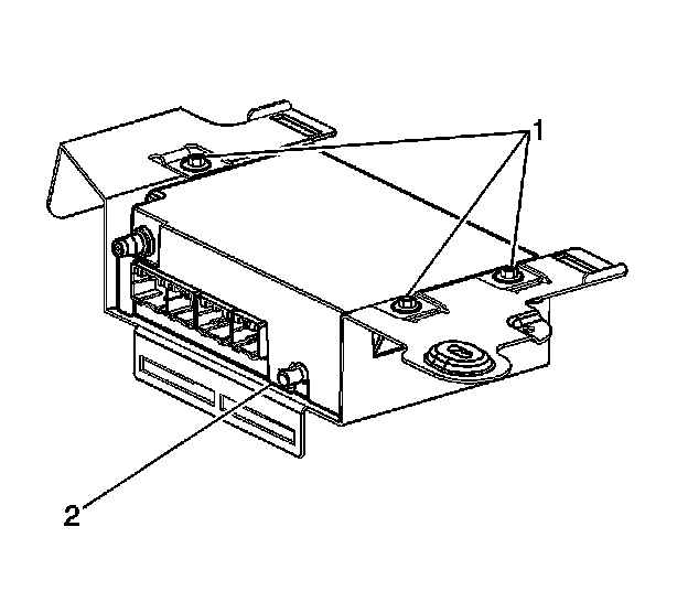 12. Fasten three retainer clips (1) from the kit to the new bracket that is included in the kit, and position the VCIM to the bracket (2).