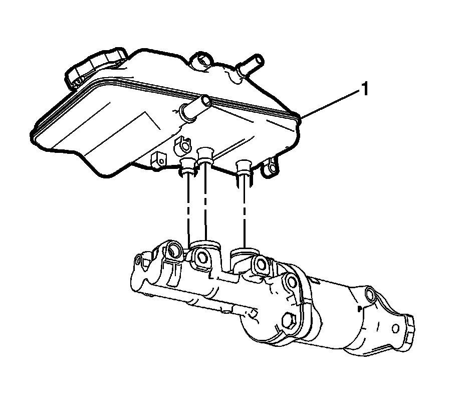 3. Carefully pull the master cylinder reservoir (1) straight upward and remove the master cylinder reservoir from the master cylinder.