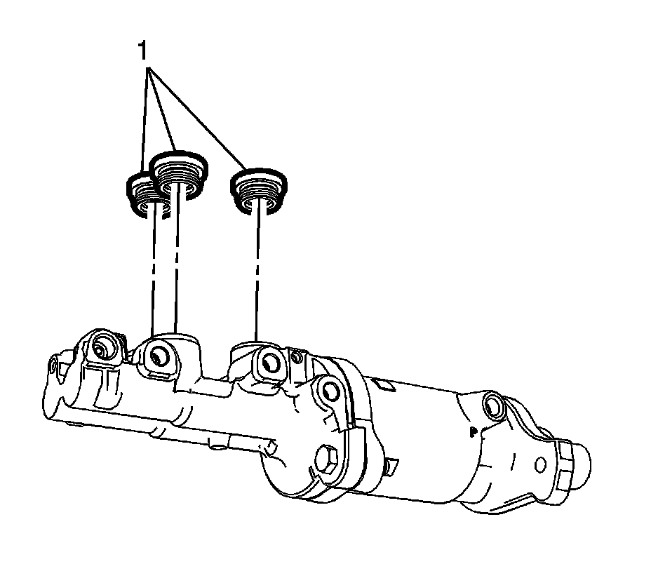 4. Remove and discard the brake master cylinder reservoir seals (1).