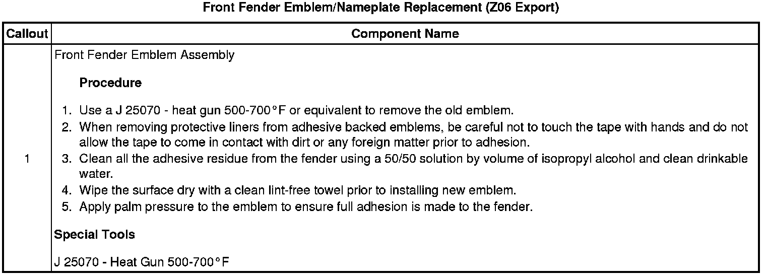 Emblem/Nameplate Replacement (Z06 Export)