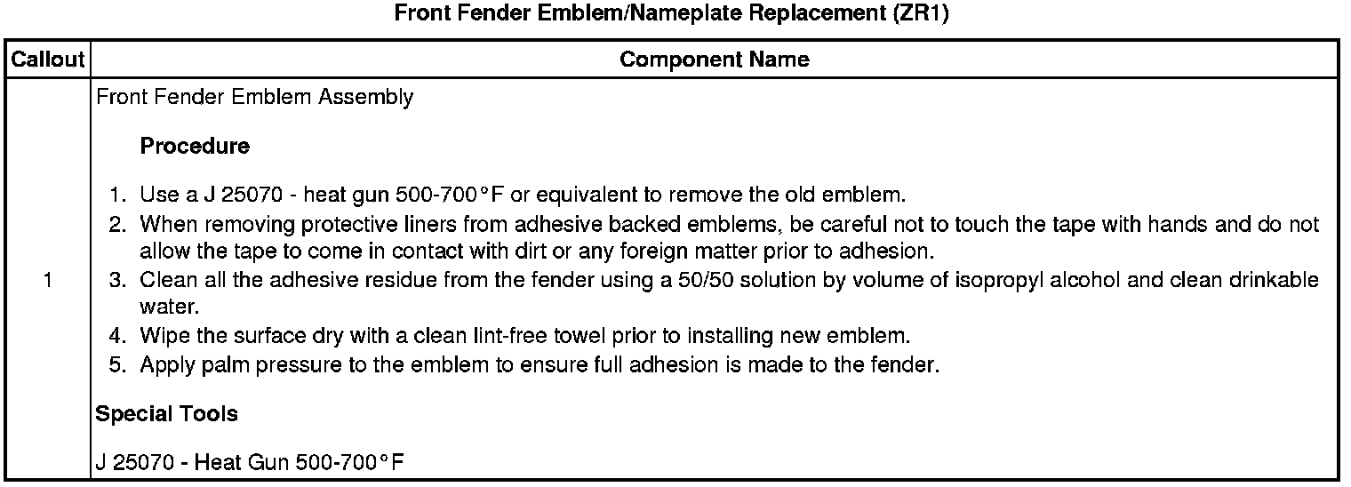 Front Fender Emblem/Nameplate Replacement (ZR1)