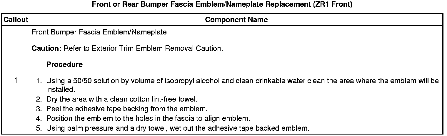 Front or Rear Bumper Fascia Emblem/Nameplate Replacement (ZR1 Front)