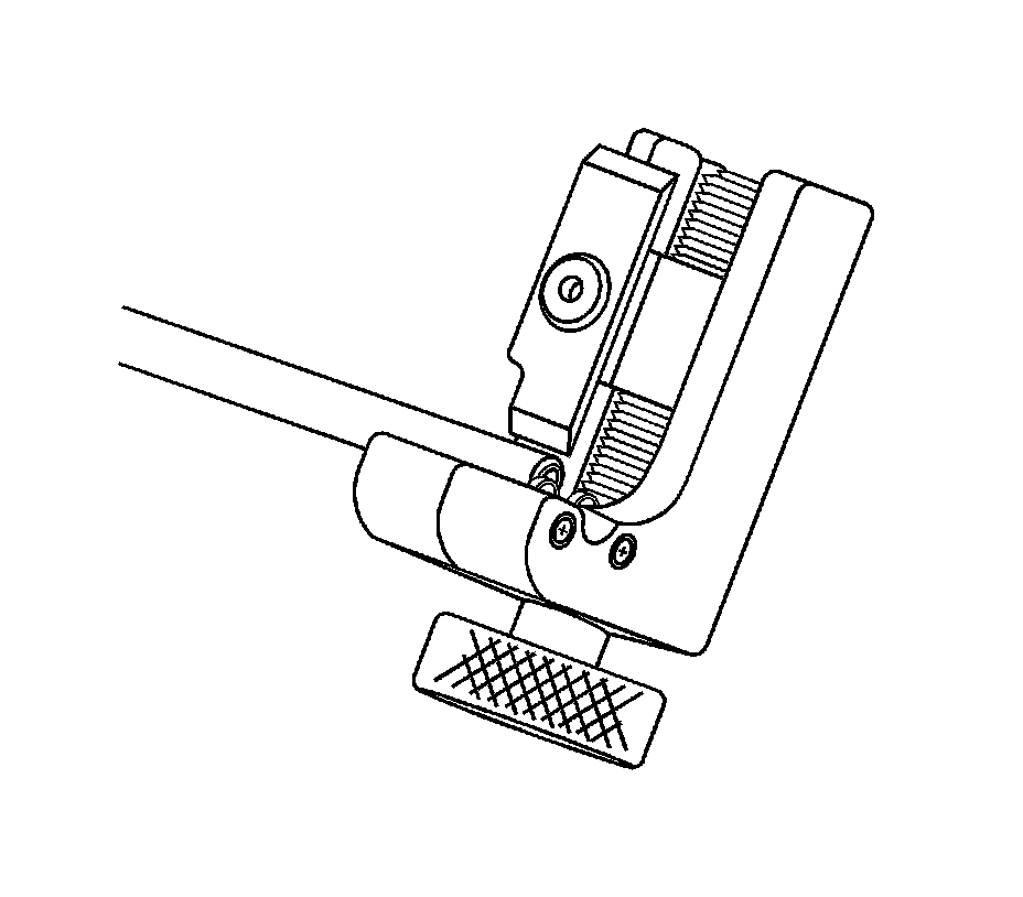 * While holding the brake pipe firmly against the stripping tool roller ledges, rotate the thumbwheel of the tool until the blade contacts the brake pipe coated surface.