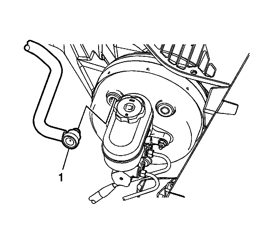 6. Disconnect the vacuum brake booster check valve (1) from the power vacuum brake booster and position aside.