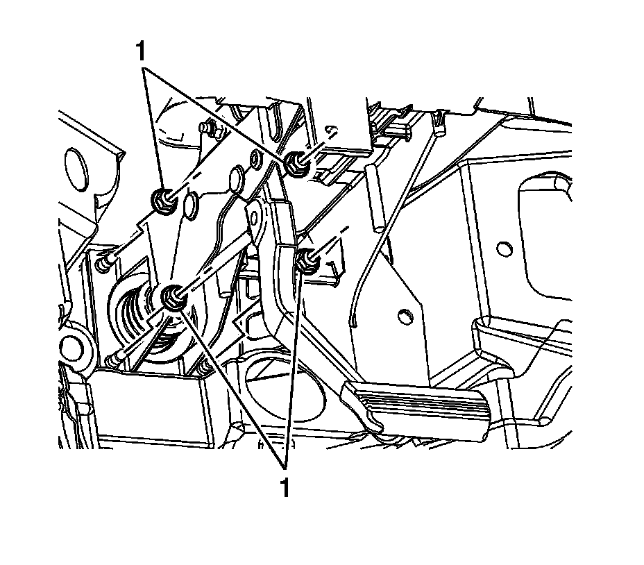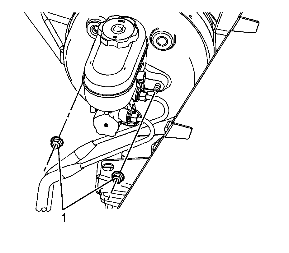 2. Install the power vacuum brake booster nuts (1) and tighten to 27 Nm (20 lb ft).