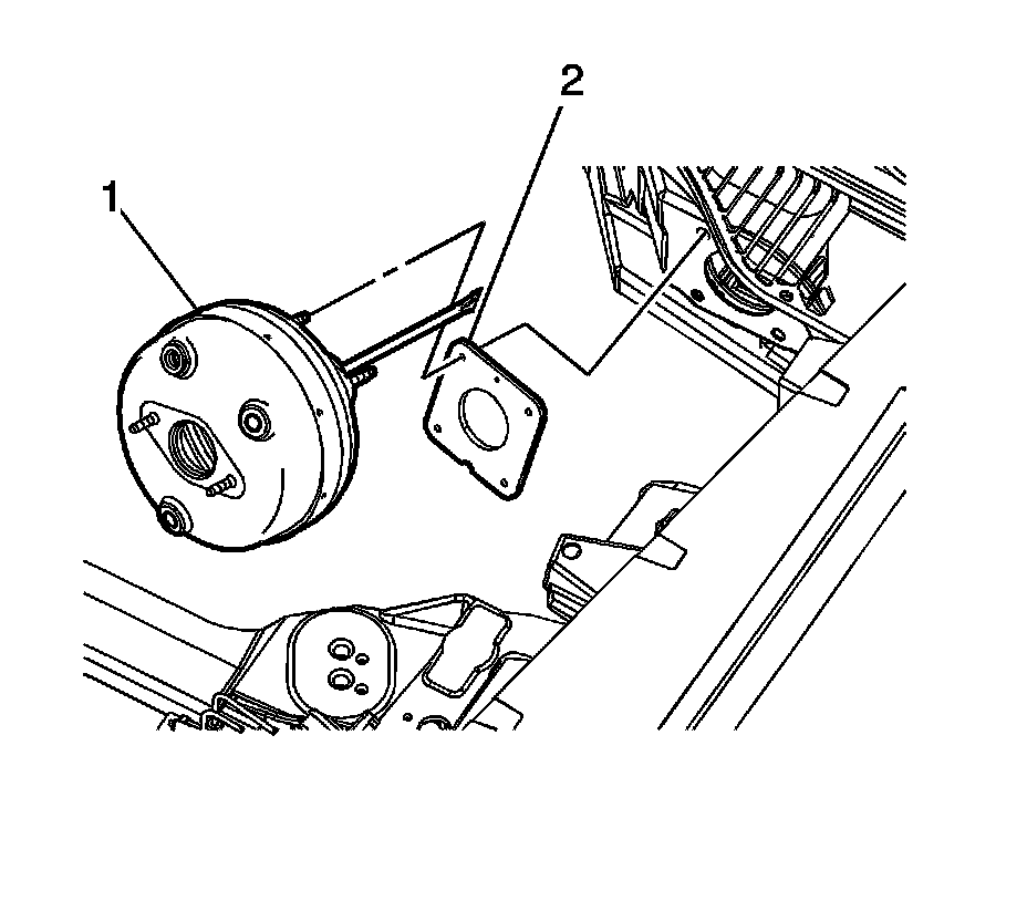 1. Install the power vacuum brake booster (1) and the gasket (2) to the vehicle.