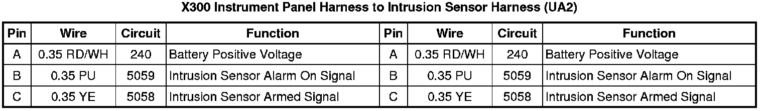 X300 Instrument Panel Harness to Intrusion Sensor Harness (UA2)