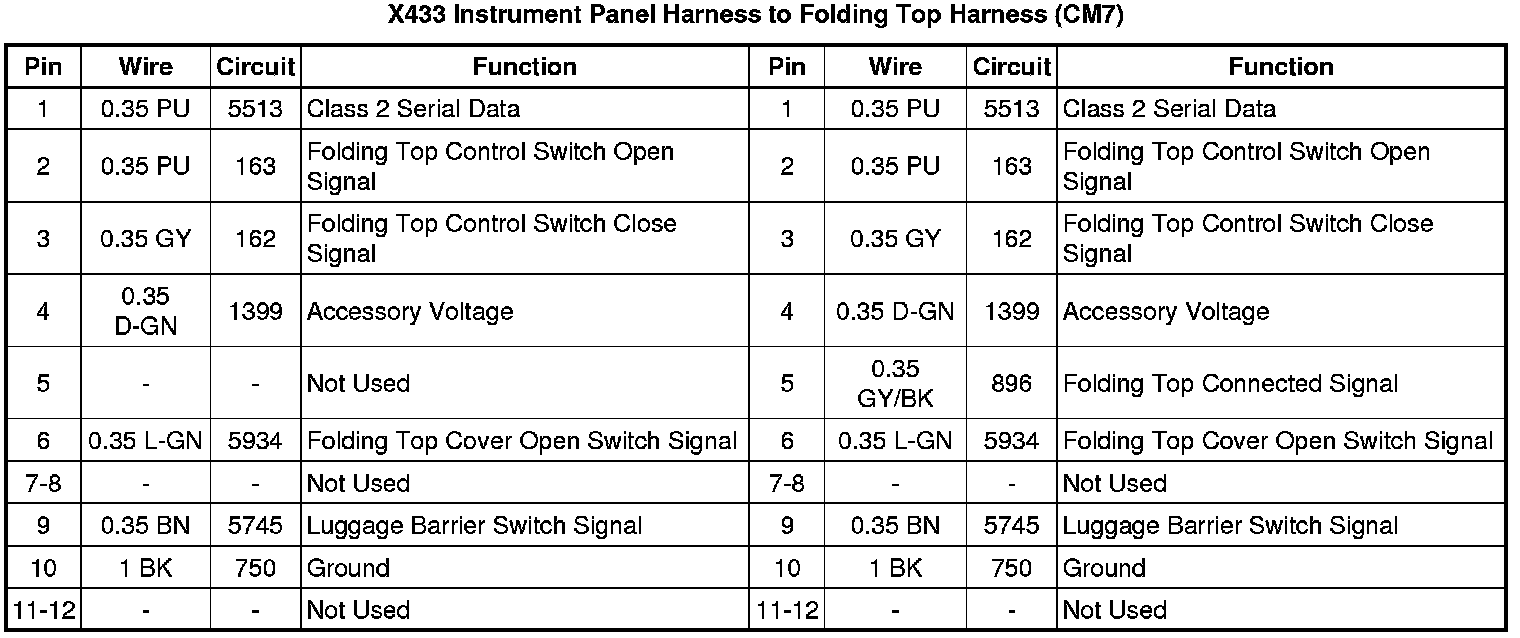 X433 Instrument Panel Harness to Folding Top Harness (CM7)