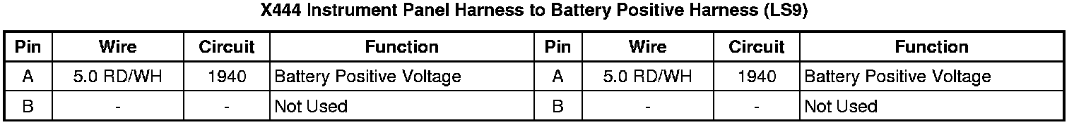 X444 Instrument Panel Harness to Battery Positive Harness (LS9)