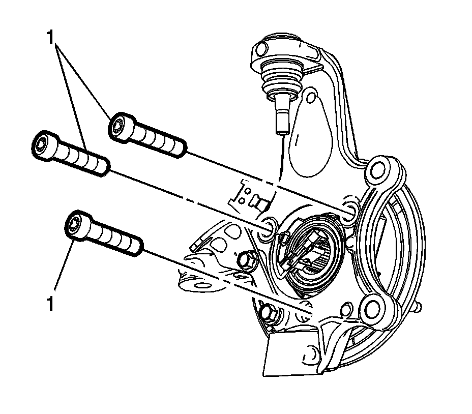 1. Install the wheel bearing and hub assembly (1) to the suspension knuckle.