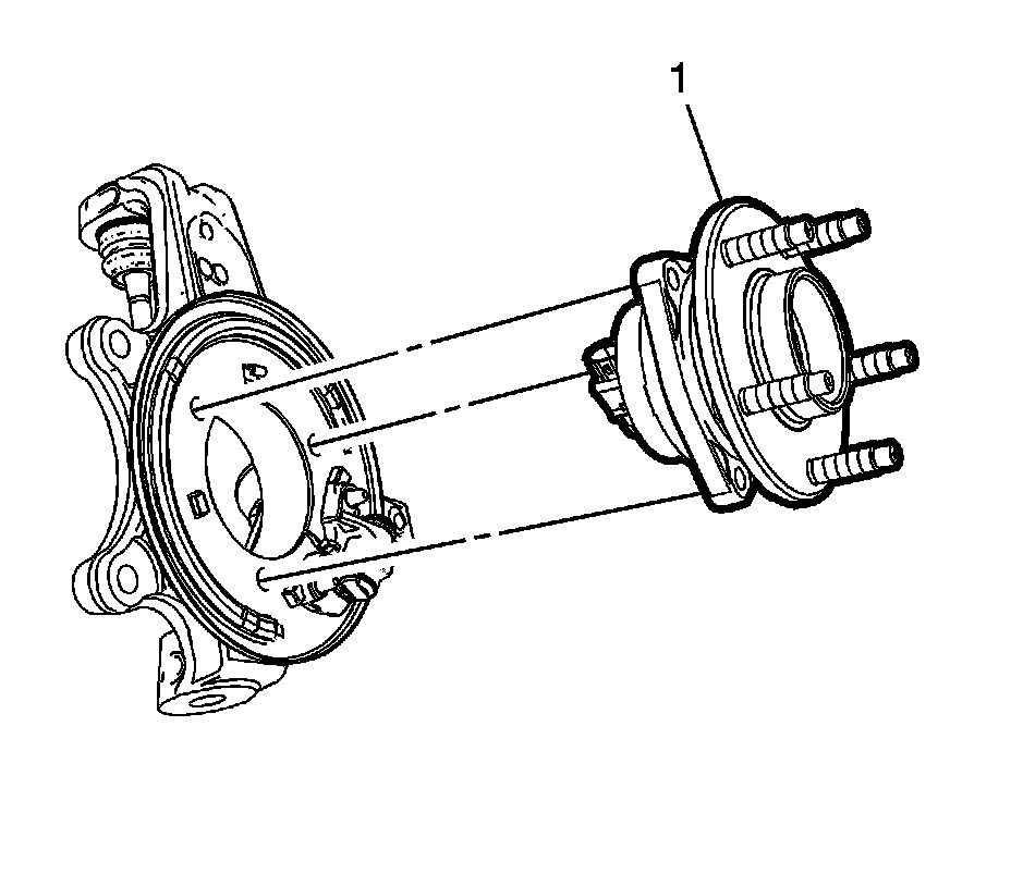 5. Remove the wheel bearing and hub assembly (1) from the suspension knuckle.