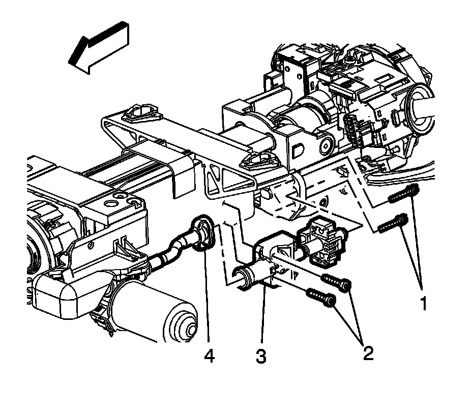 3. Install the retaining screws (1) and (2) to the steering column telescope actuator assembly (3) and tighten.