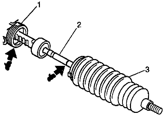 Important: After removing the boot, inspect the inner tie rod for evidence of corrosion or contamination. If none is evident, continue with the repair. If corrosion or contamination is evident, replace the steering gear.