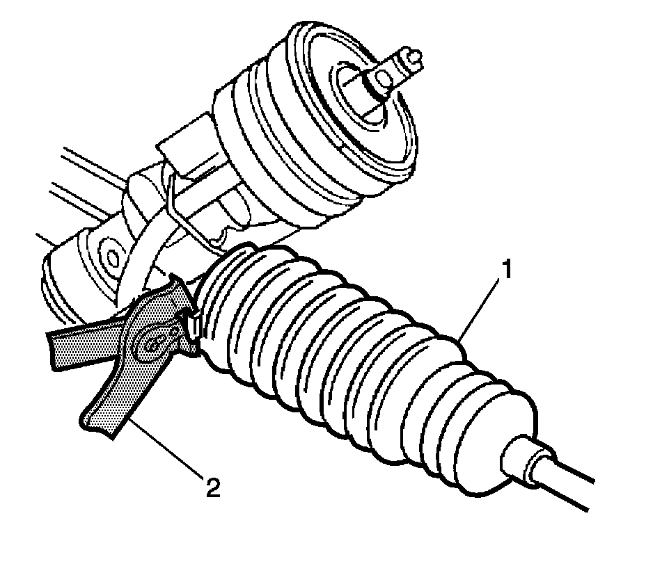 1. Install the new boot clamp (2) onto the rack and pinion boot (3).