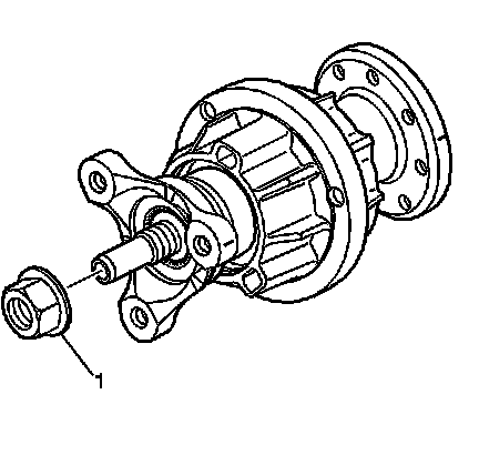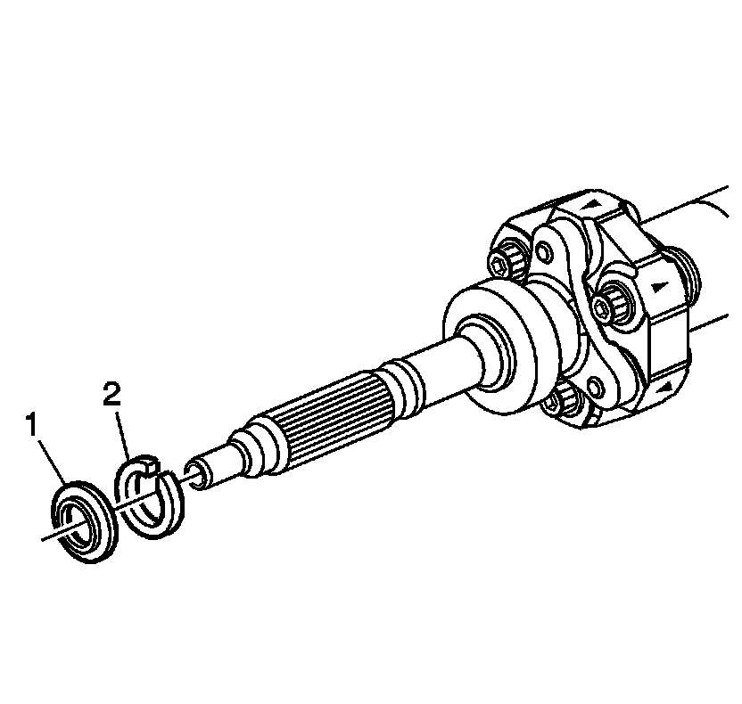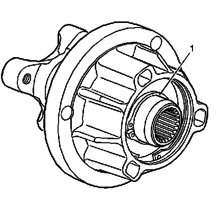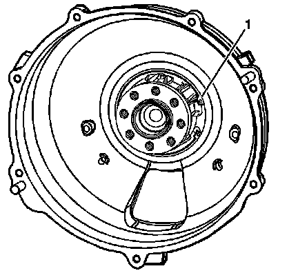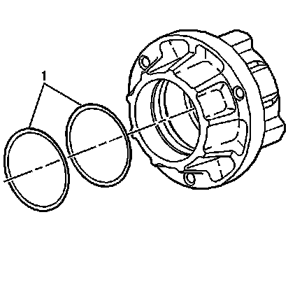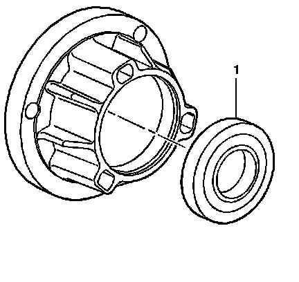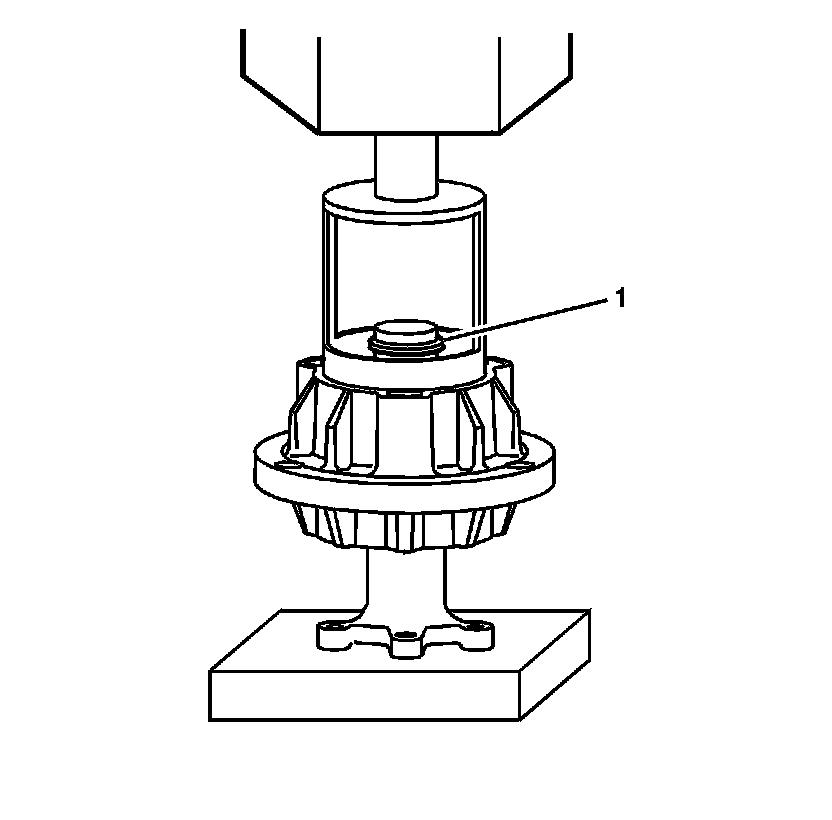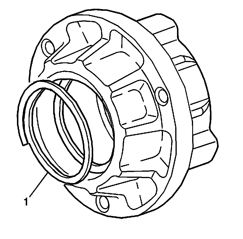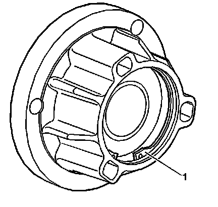 1. Position the rear bearing housing assembly into a press. Apply pressure to the housing and compress the wave washer in order to remove the snap ring (1) from the hub.