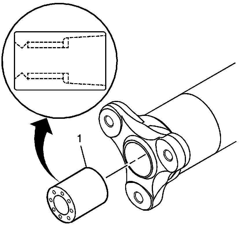 18. Remove the bushing (1) from the propeller shaft, if required - automatic transmission.