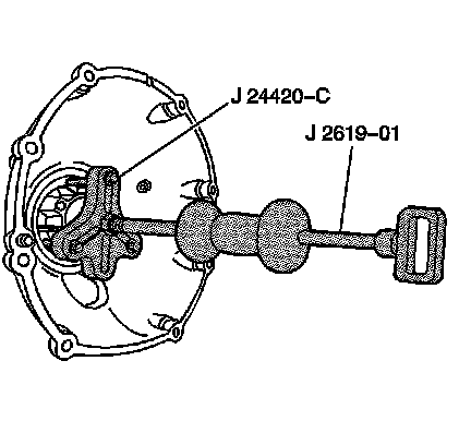 6. Install the J 24420-C - puller and 3 M10-1.5 x 120 mm bolts to the rear bearing housing.