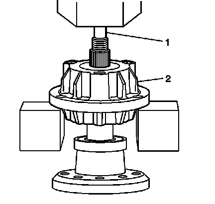 4. Position the bearing housing assembly (2) into a press in order to remove the flex plate spindle (1).