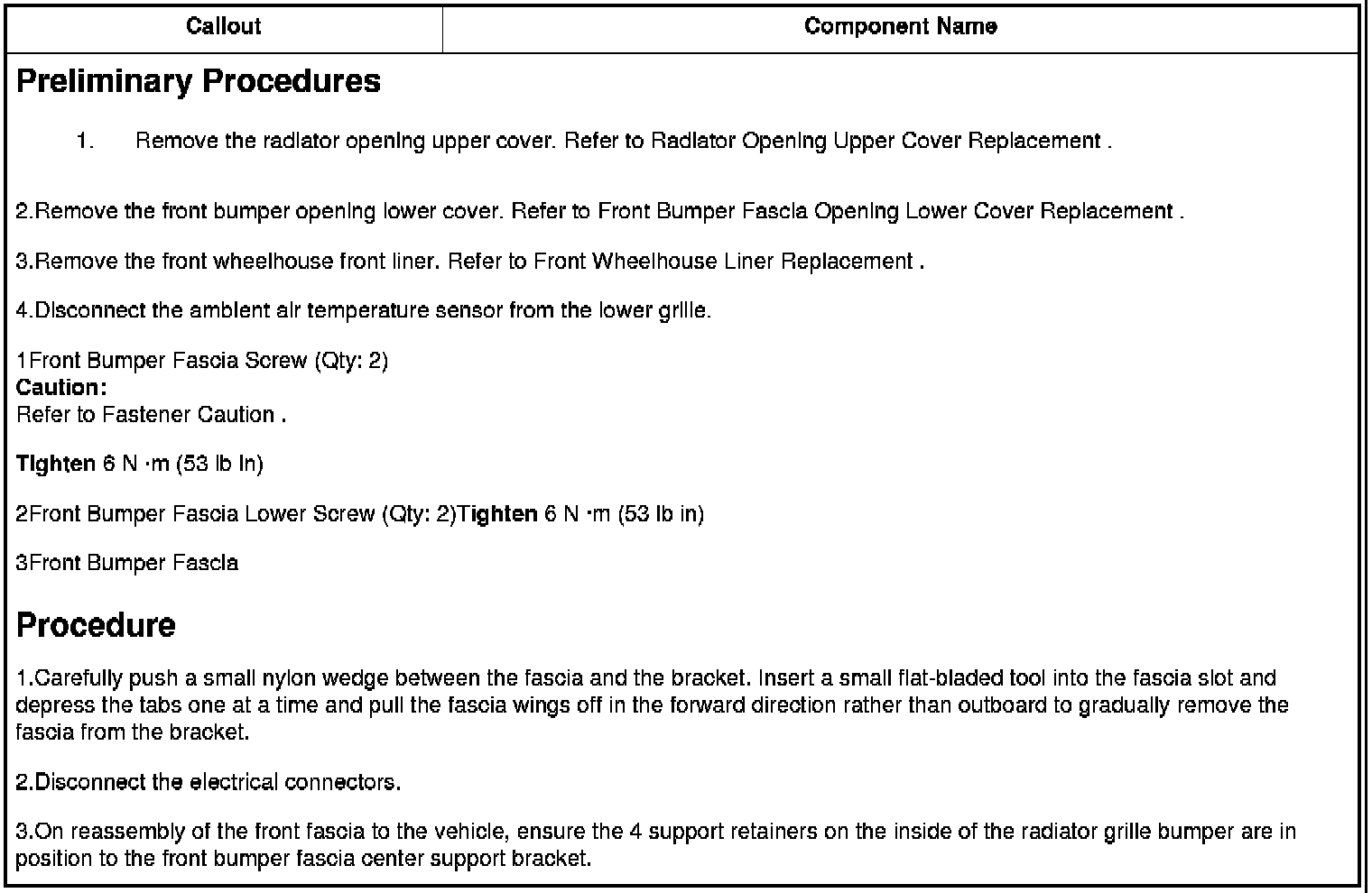 2Front Bumper Fascia Lower Screw (Qty: 2)Tighten 6 N �m (53 lb in)