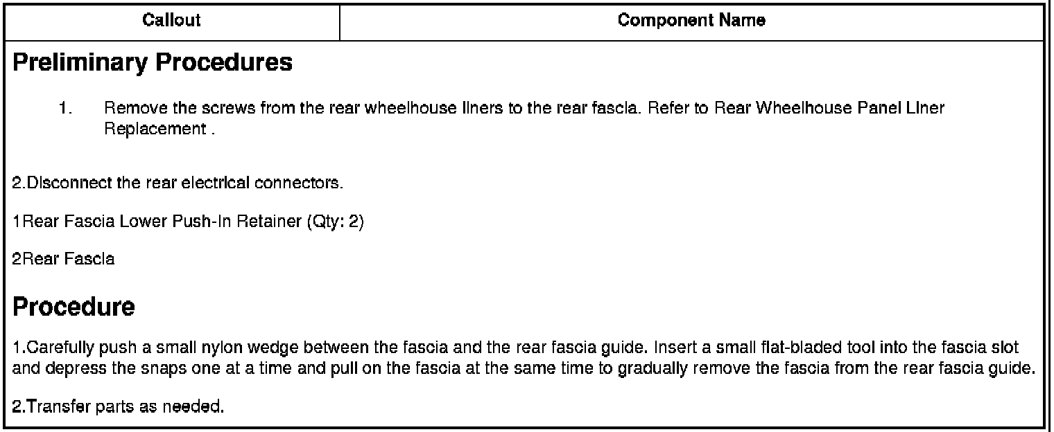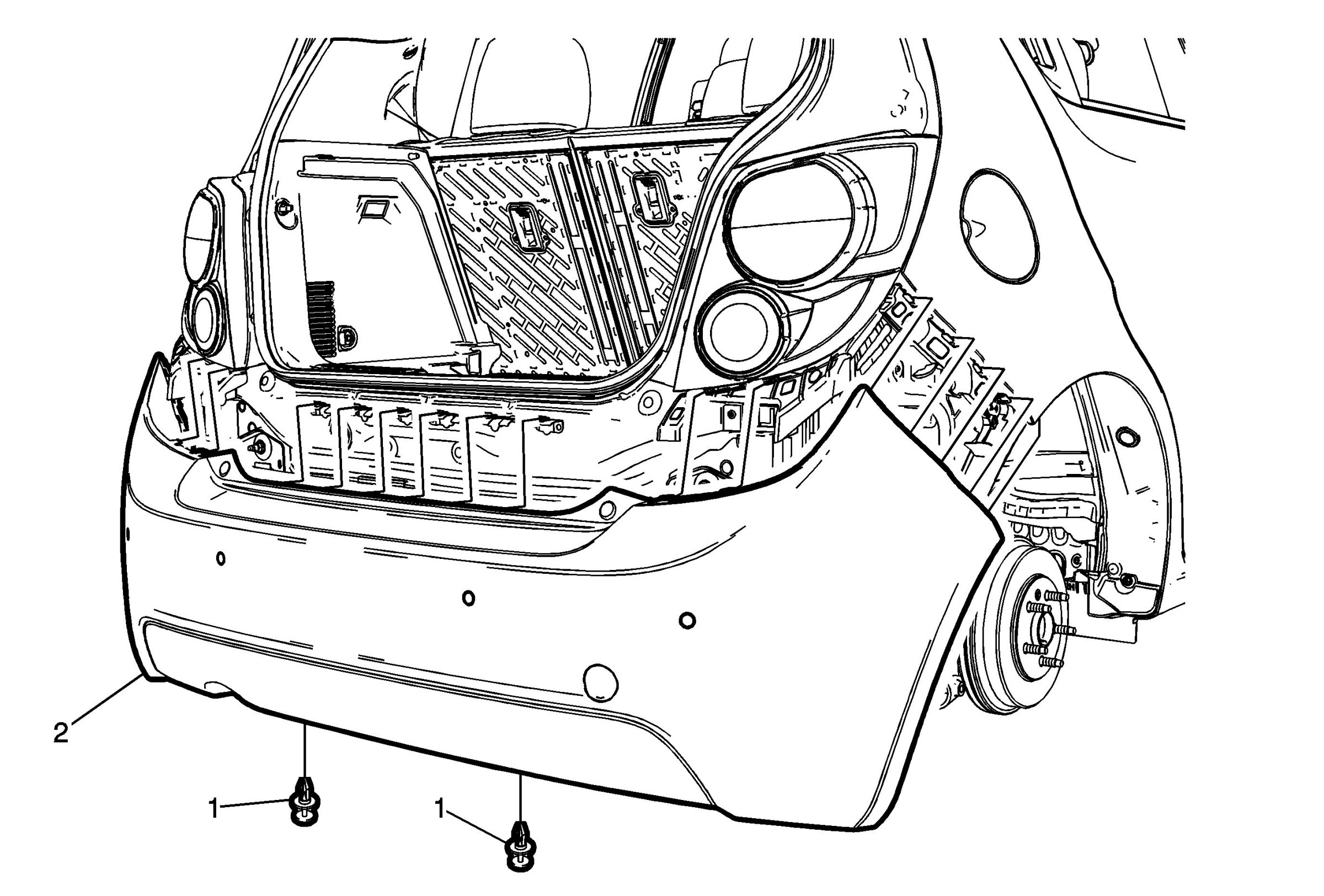 3.Insert a small flat-bladed tool or plastic trim tool into the fascia slot and depress the tabs one at a time. Pull the rear bumper fascia carefully rearward and outward in order to release the retaining tabs from the rear bumper fascia guides.