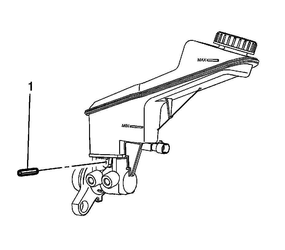 2. Remove and discard the brake master cylinder reservoir roll pin (1).