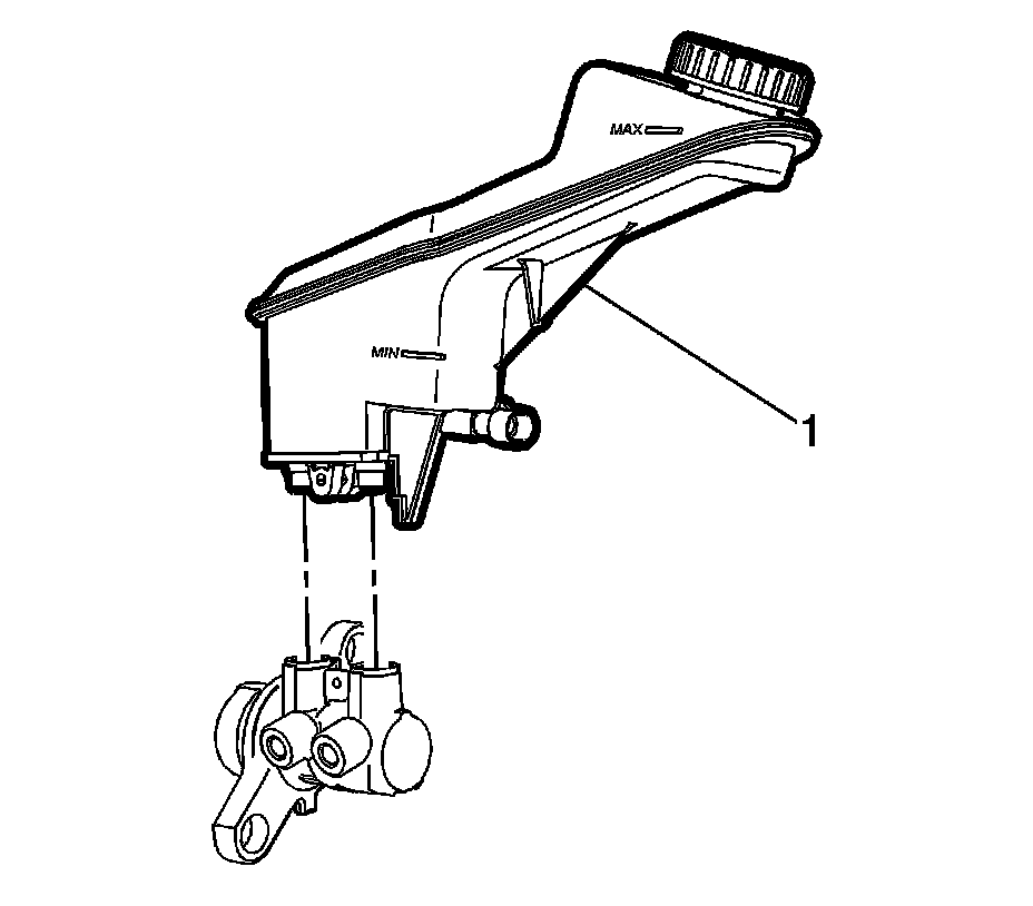 4. Remove the brake fluid level indicator switch, if necessary. Refer to Brake Fluid Level Indicator Switch Replacement Service and Repair.
