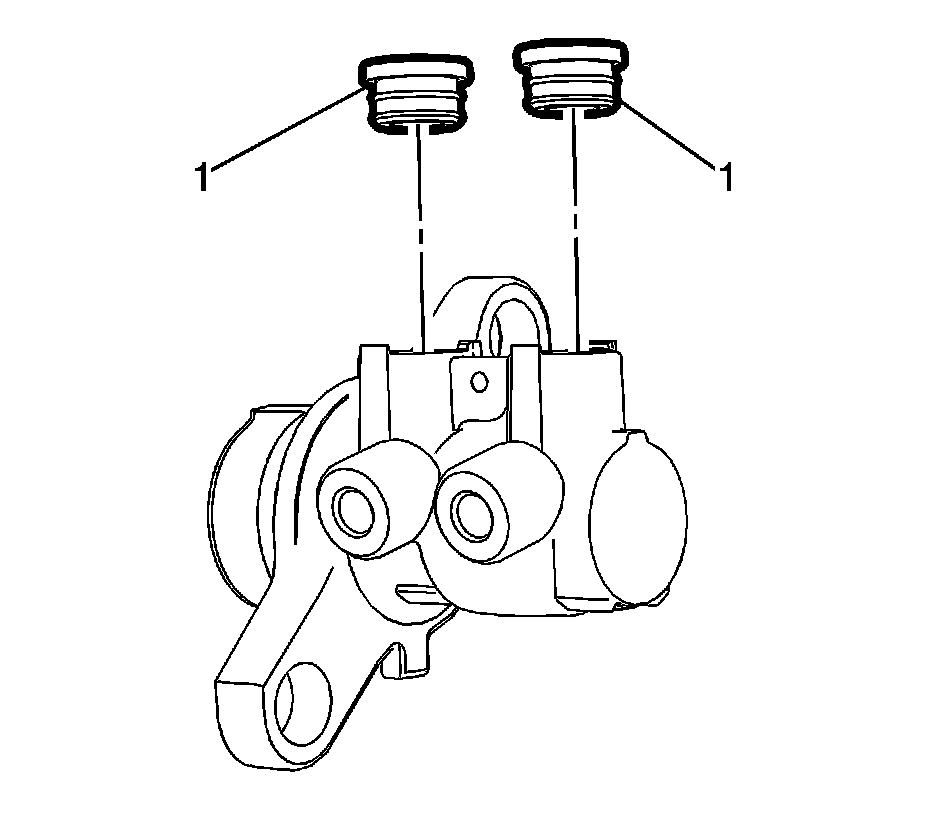 1. Lightly lubricate the brake master cylinder reservoir seals (1) with GM approved brake fluid from a clean, sealed, brake fluid container.